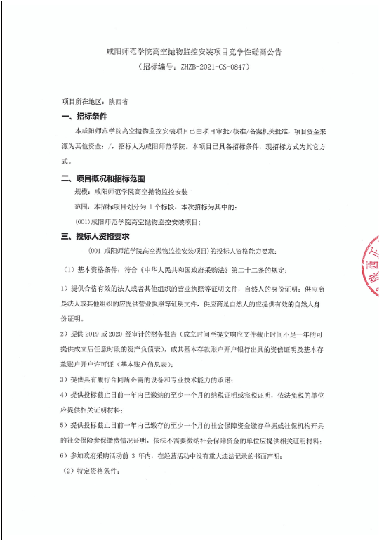 DB电竞高空抛物监控安装项目竞争性磋商公告