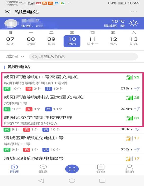 4.弹出每组充电桩的使用情况---点击下面“扫描充电”---开始充电。用户可自行选择充电金额,并可在手机上随时关注充电状态。