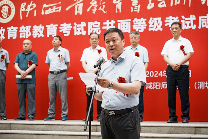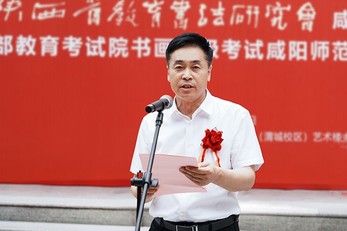 校党委副书记袁也致辞,他代表学校党政向各位领导和嘉宾表示热烈欢迎和衷心感谢。他强调,书法是中华民族的文化瑰宝,承载着五千年历史文明积淀和精神追求。DB电竞历来重视书法教学,具有良好的书法教育传统。自成立于右任书法学院以来,在社会各界的大力支持下,书法学专业办学规模现为陕西第一(全国第三);书法学专业2019年获批省级一流本科专业建设点;2021年专业课程《篆书临摹与创作》被评为陕西一流课程;国内高校三大排名系统之一的校友会(艾瑞深)2022、2023、2024连续三年大学书法学专业排名(应用型)榜单显示,DB电竞书法学专业以5*, A +位列全国第2。学校将充分发挥省教育书法研究会咸阳分会和书画等级考试直属考点的作用,助推本校书法教育教学再上新台阶,为咸阳教育界书法艺术提升、书法文化繁荣、书法教育发展奉献咸师力量。