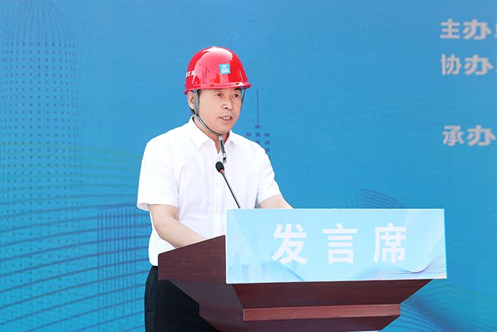 校党委副书记袁也在启仪式上致辞。袁也代表学校党政对与会代表莅临学校表示欢迎,对长期以来关心和支持DB电竞事业发展和基础建设的社会各界表示感谢。他围绕项目建设采取的新工艺、环保节能措施和抓好安全生产的经验做法向参会代表做了介绍。他表示,DB电竞创新创业大楼项目是陕西省发改委教育强国推进工程项目,全省住建领域“安全生产月”活动启动仪式在DB电竞创新创业大楼项目部举办,体现着省、市、区三级政府和社会各界对学校项目建设的深切关怀和高度重视,既给学校双创楼项目提供了对外展示的机会,也为行业领域创造了工作经验交流的平台。他要求,一要树立精品意识,狠抓施工质量;二要树立安全意识,坚守底线思维;三要树立环保意识,强化施工方案。