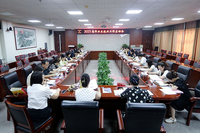 6月17日下午,我校召开2025届毕业生就业工作启动会。校党委副书记周群英出席并讲话。招生就业处处长王奥玲主持会议。