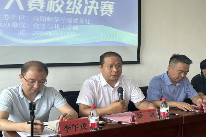 姚波代表学校向进入决赛的项目团队师生表示祝贺,感谢承办单位对赛事的投入和付出。他表示,学校近年来创新创业教育取得较好成绩,有力推动了创新型人才培养改革的实践探索。此次参赛项目涉及人工智能、绿色环保、装备制造、非遗艺术等多个领域,体现了专创融汇的育人成果,充分体现了我校学生的青春风采、启迪智慧之光,弘扬了咸师人的创新精神、创业理念、为服务咸阳地方经济发展和文化传承做出自己的贡献。他预祝决赛学生勇获佳绩,并宣布比赛开始。