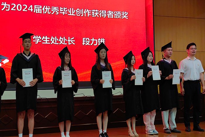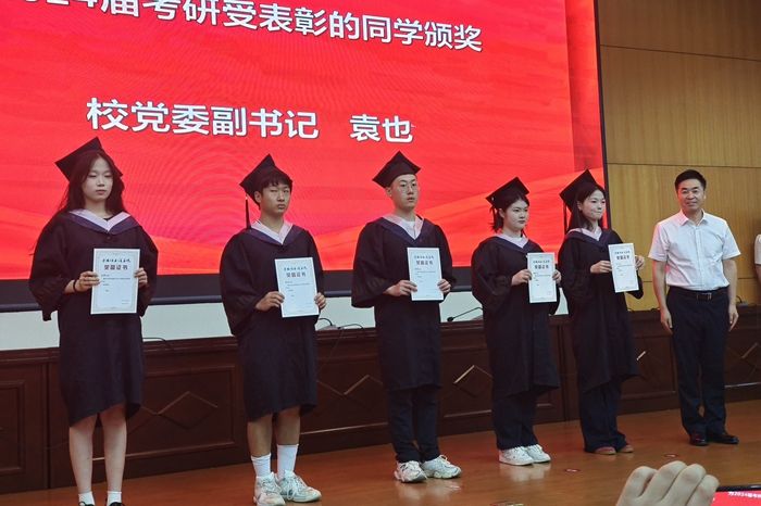 校党委副书记袁也为考研学生颁发了荣誉证书,学生处处长段力雄为优秀毕业论文获奖学生颁发了荣誉证书。