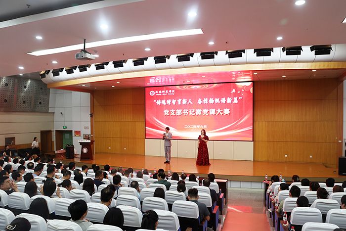 为深入学习贯彻习近平新时代中国特色社会主义思想和党的二十大精神,迎接中国共产党成立103周年,推进党纪学习教育和学校党建工作重点任务走深走实,激发党支部工作活力,全面提升党课质量,6月28日,我校在一号楼报告厅举办“铸魂增智育新人 奋楫扬帆谱新篇 ”党支部书记微党课大赛决赛。