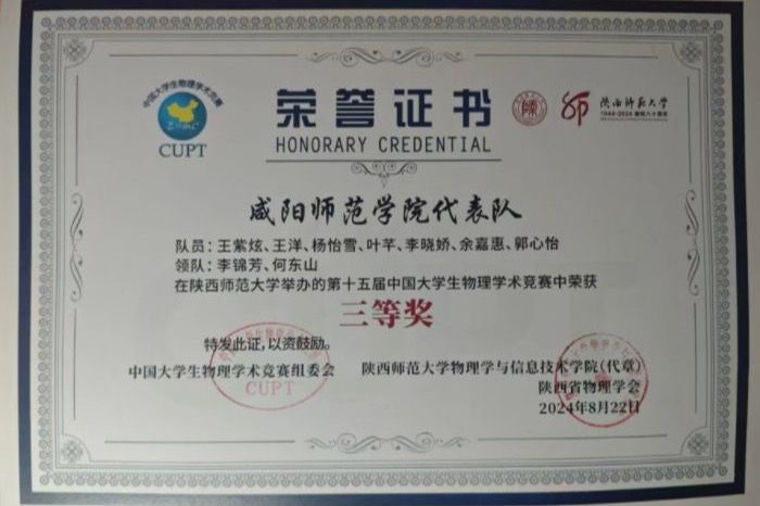 我校学子在第十五届中国大学生物理学术竞赛中获团体赛三等奖