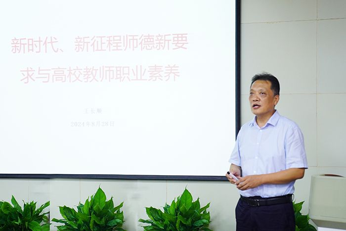 8月28日,校长王长顺以“新时代、新征程师德新要求与高校教师职业素养”为主题,为我校2024年新入职教师做师德师风专题培训。