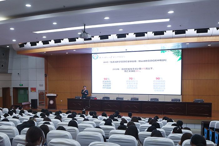 咸阳市妇联、陕西中医药大学第二附属医院部分工作人员,校工会、校团委全体工作人员以及我校女教职工和女学生代表近500人在现场聆听了讲座。
