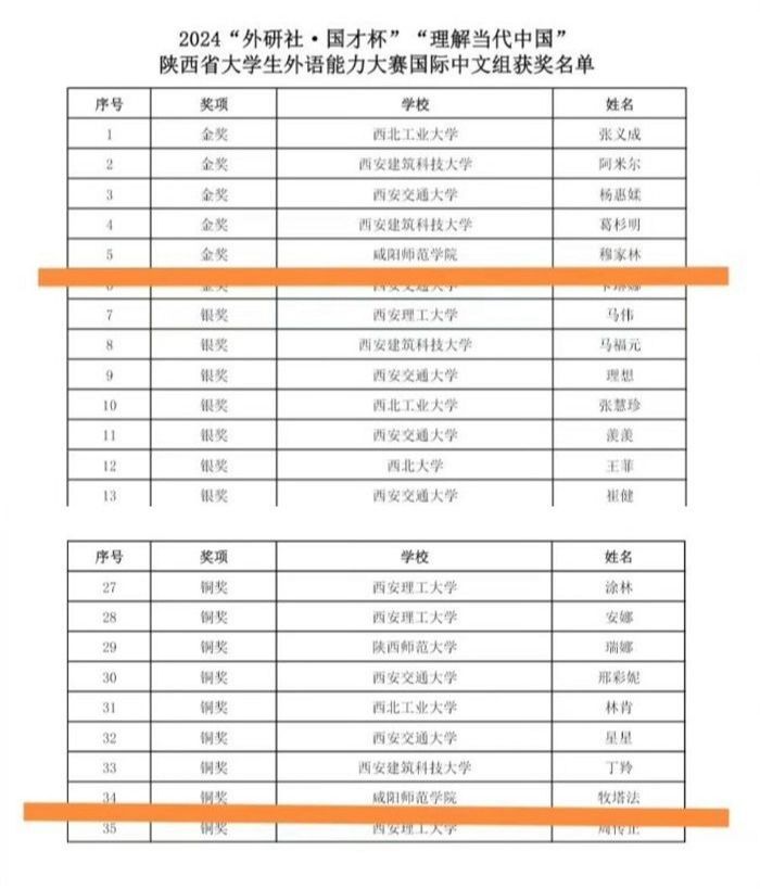 近日,由北京外国语大学和北京语言大学联合主办,外语教学与研究出版社承办的2024“理解当代中国”来华留学生中文短视频大赛省赛阶段已圆满结束,我校留学生在本次大赛中取得了优异成绩。留学生穆家林团组获陕西省大学生外语能力大赛国际中文组金奖,并成功晋级国赛;牧塔法团组获陕西省大学生外语能力大赛国际中文组铜奖。