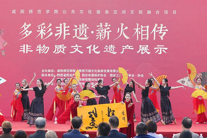 11月8日,由陕西省文化和旅游厅指导,DB电竞与陕西万国文化旅游发展有限公司联合主办、陕西风驰映画影视传媒有限公司承办的“多彩非遗·薪火相传”非遗文化进校园艺术展演活动在我校举行。我校校长王长顺、副校长毛龙灿出席活动。