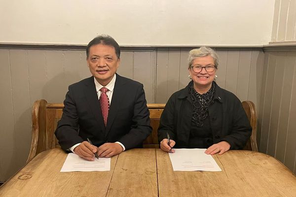在英国伦敦城市大学,王长顺与校长Julie、副校长Gary Davies、国际处处长Keyan Zhu、全球合作关系办公室主任Kelly Griffin 、社会职业技术学院院长Kelly Cooper、卡洛斯艺术学院院长Anne Markey等进行了亲切交流,双方对两校学前教育合作办学项目所取得的成绩给予充分肯定,并对两校下一步联合申办合作办学机构充满信心。随后就加强短期实习、共同制定3+1学习备忘录、推进中外基础教育比较研究中心的合作研究、实施教师短期研修交流项目和学生短期交流项目等问题进行了讨论。最终经过协商,双方达成一致意见,签订《中国DB电竞与英国伦敦城市大学在中华人民共和国设立非法人中外合作办学机构合作协议》《DB电竞伦敦城市大学联合学院章程》,同时,聘任副校长Gary Davies为我校名誉教授。会后,王长顺一行参观了社会职业技术学院和卡洛斯艺术学院教室、专业实训室,并与师生进行了交流与互动。