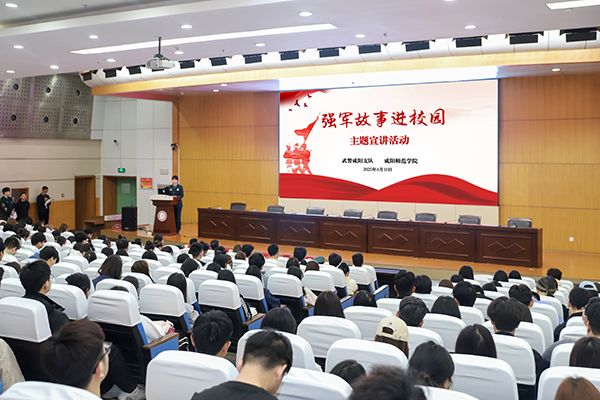为深化国防教育,弘扬强军精神,4月10日,校团委联合武警咸阳支队和咸阳市渭城区退役军人事务局在一号楼报告厅举办“强军故事进校园”主题教育宣讲活动。校党委副书记周群英、渭城区退役军人事务局副局长李军、武警咸阳支队政治工作部保卫科科长陈相顺出席活动。