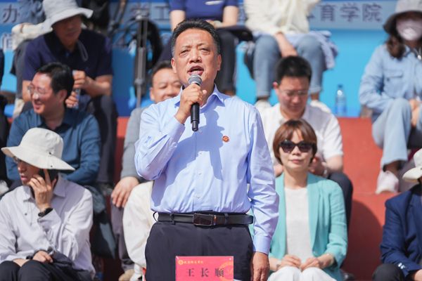 他指出,体育是人类进步的阶梯,是生命活力的源泉。它不仅能够强健我们的体魄,更能磨砺我们的意志,培养我们的团队精神和竞争意识。在当今时代,知识与体能并重,智慧与健康同行。本届运动会的主题是“阳光下奔跑、赛场上锤炼”。全体师生要把体育锻炼作为一种生活习惯、一种生活理念,在坚持不懈的体育锻炼中,增强体质体能,锤炼坚强意志,塑造健全人格,磨砺奋斗精神,用汗水汇聚成实现体育强国梦的青春力量。他希望,全体师生既要做博学多才的“经师”,更要成为体魄强健的“人师”,既要追求“腹有诗书气自华”的精神境界,也要锻造“千磨万击还坚劲”的强健体魄,把运动场上的拼搏精神转化为建设教师教育特色鲜明的一流应用型大学的强大动力,共同谱写属于咸阳师院人的时代华章。