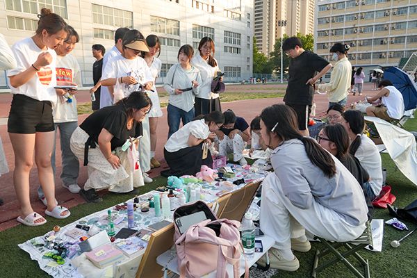 活动在激情澎湃的乐队表演中拉开帷幕,《稻香》《这就是爱》等经典曲目引发全场合唱,爵士舞表演《我最红》等节目展现了青春活力。跳蚤市场中,毕业生通过交换、义卖等方式流转书籍、文具、生活用品和文创产品。活动现场还组织了衣物、图书捐赠。