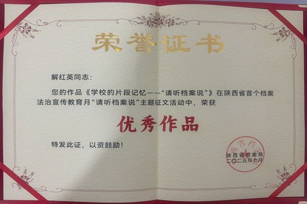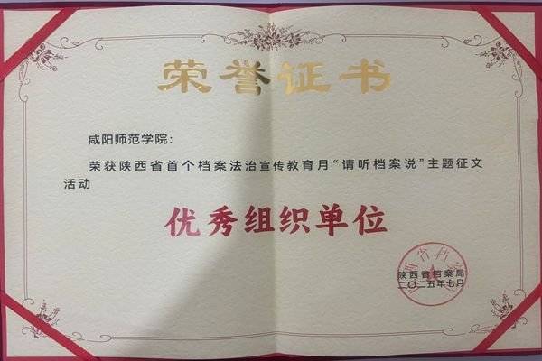 近日,我校在2025年陕西省首个档案法治宣传教育月主题征文活动中获评优秀组织单位。报送的主题征文1篇入选“优秀作品”。
