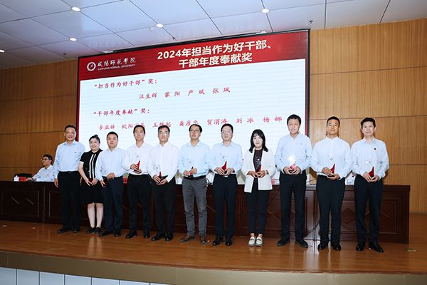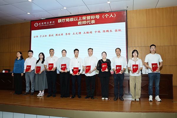 会上,袁也宣读了《关于表彰2024—2025学年度荣获厅局级及以上荣誉称号的决定》,周群英宣读了《关于对获得2024-2025学年度厅局级以上教学奖励表彰的决定》,毛龙灿宣读了《关于对获得2024-2025年度厅局级以上科研奖励表彰的决定》。会议集中表彰了2024-2025学年度获得厅局级以上教学、科研奖励以及荣誉称号的集体和个人,并向从事教育教学工作满三十年的教职工颁发了纪念证书。同时,大会还对第三批校级“黄大年式教师团队”、2024年度考核先进奖单位、“干事创业好班子”、处级“优秀”领导班子、“担当作为好干部”、“干部年度奉献”个人、校园优秀新媒体平台进行了表彰。