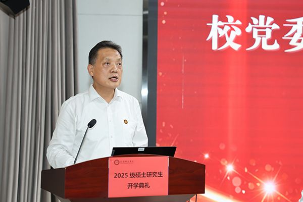 王长顺代表学校向首届硕士研究生表示热烈欢迎和祝贺。他指出,首届硕士研究生招生培养是学校办学层次和发展进程的重大突破,标志着学校事业迈入新阶段。他勉励新生将个人理想融入国家发展和民族复兴伟业,心怀“国之大者”,以实际行动报效祖国。他鼓励新生明确目标、主动探索、不断创新,珍惜学校优质科研平台与师资资源,力争产出有价值、有影响力的成果。面对科研挑战,要锤炼意志品质,以“坐得住冷板凳”的毅力和永不言弃的精神不断攀登高峰。他表示,学校将持续加大研究生教育投入,完善实验室、图书馆、实践基地等硬件设施。优化研究生培养方案,创新“导师负责制+团队培养”模式,引入行业专家参与教学。积极搭建学术论坛、学科竞赛等成长平台,强化应用型与创新型人才培养,为学生成长成才提供坚实保障。