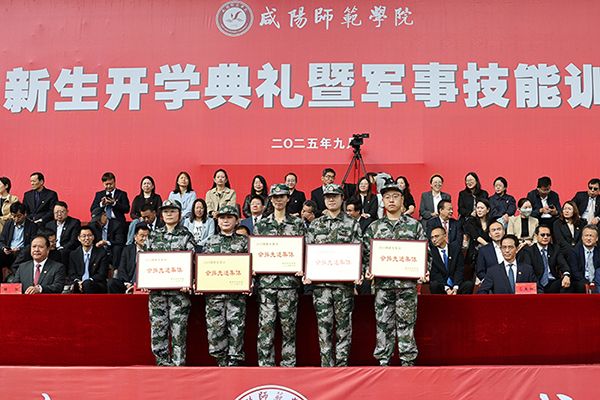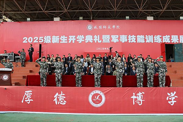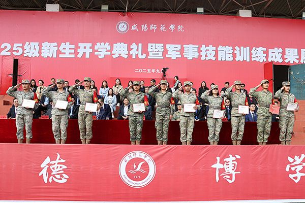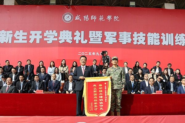 9月19日上午,我校在渭城校区田径场举行2025级新生开学典礼暨军事技能训练成果展。校党委书记王长顺,副校长毛龙灿、姚波、范广、宁海军出席典礼。校党委副书记袁也主持典礼。