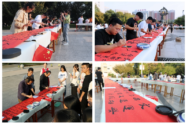 9月29日,我校于右任书法学院在1号教学楼前广场举办“不忘初心、牢记使命、兴我中华”师生同书千米长卷共庆新中国成立70周年活动。校党委书记赵万东,校长舒世昌、党委副书记袁也,副校长王长顺、省市书协和高校书法名家出席活动。