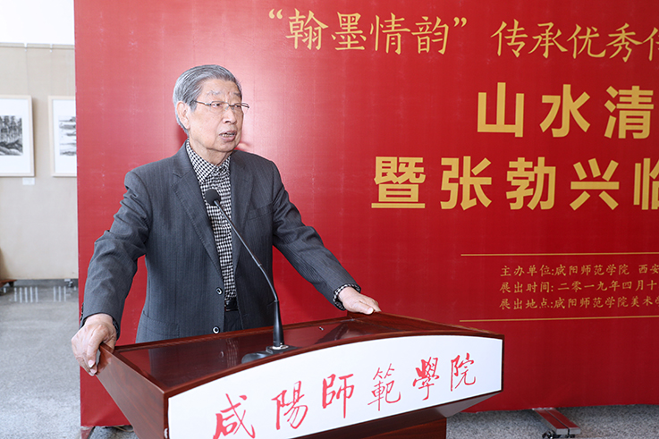 为响应党中央传承中华优秀传统文化的号召,大力推进优秀书画文化进高校,传播中国书画的艺术魅力,4与18日,“‘翰墨情韵’传承优秀传统文化 庆祝新中国成立70周年”山水清晖书法研究班暨张勃兴临摹古书画作品展在我校艺术楼展厅开展。中共陕西省委组织部副部长、老干部局局长黄思光,中共陕西省委教育工委书记董小龙,咸阳市委常委、宣传部部长马俊民,陕西省美协名誉主席赵振川,陕西省老年大学副校长段宗辉,中共陕西省委原书记张勃兴,校长舒世昌、纪委书记王启和,副校长吕广利、毛龙灿、王长顺出席展览开幕仪式。校党委书记赵万东主持开幕仪式。