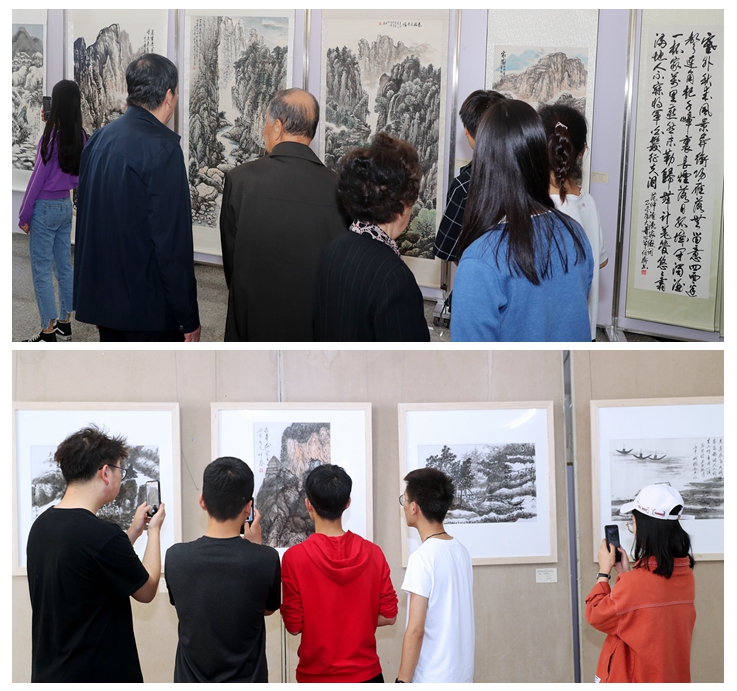 开幕式后,省市领导与研究班的老专家、师生们一起参观了书画作品。参观画展的美术学院学生呼延非凡讲到,展出作品或笔墨苍茫、或构图奇拙、或秀润华滋、或平淡烂漫,有对经典古书画的临摹,有对祖国大好河山的吟诵,都是弘扬中华优秀传统文化的心血结晶。这些七八十岁的老专家,他们不惧年龄笔耕不辍、坚持临摹和创作,令我感动。作为青年学子,我们要向老专家学习,珍惜宝贵的学习时光,积淀自己的文化底蕴,锻炼和提升自己的技艺,努力成为传承中华优秀传统文化的合格艺术人才。