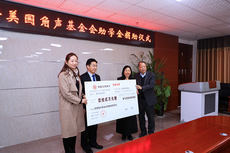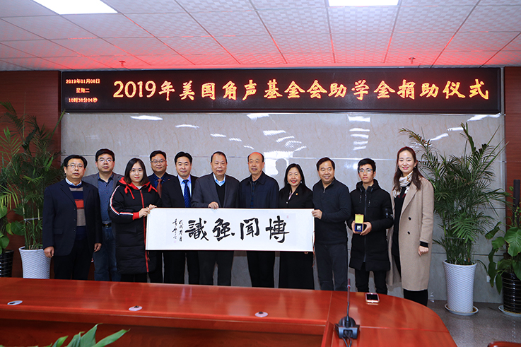 1月8日,美国角声基金会创始人劳伯祥博士、副总监胡嘉骥先生、秘书长周简艳珍女士一行来到我校,向受助学生发放2018-2019年度助学金。校党委书记赵万东亲切会见了基金会客人,代表学校党政感谢基金会多年来对我校家庭经济困难学生的无私帮助和华人华侨的善行义举。他表示,我校将以此为契机,加强学生教育,引导学生认真学习,回报社会。