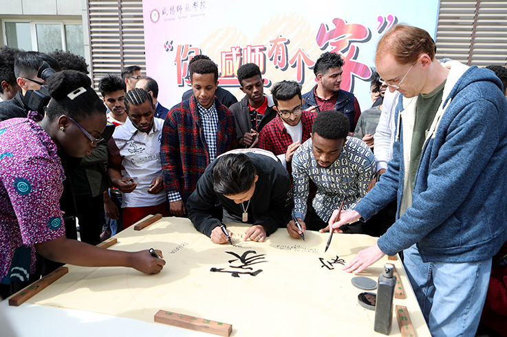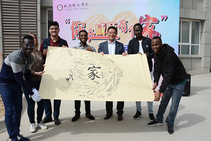 为了让国外留学生、中国少数民族学生尽快融入大学校园,成为学校大家庭的一份子,3月15日,我校在16号留学生公寓楼前,举行“你在咸师有个家”主题活动,师生同写一个“家”字、同系一个心愿瓶、同种一棵银杏树。校党委书记赵万东,校党委副书记马智勇、袁也,纪委书记王启和,副校长吕广利、毛龙灿参加了活动。